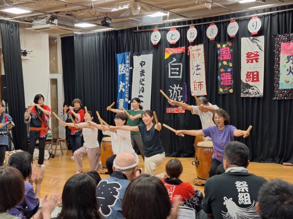 9/13 太鼓教室 2025.10.04 最終更新日時 : 2025.10.04 サイト管理者 9月13日に太鼓教室前期が終了しました。そして9月23日さとねまつりにて、講習会参加者のうち6名で90人近くの観客の前で演奏しました。10月から後期の講習会“豊年太鼓”が始まります。たくさんの皆さんのご参加をお待ちしています。