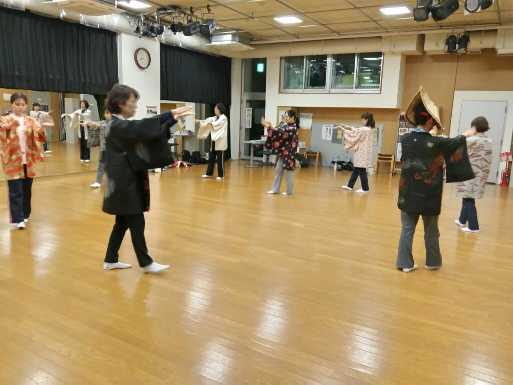 おわら節と西馬音内盆踊りの細かな動きを丁寧にご指導いただきました。